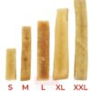Sery himalajskie produkowane są ręcznie, więc każda sztuka jest inna i jej wymiary mogą różnić się od siebie (o ±5%). Dlatego też nasze gryzaki dzielimy według kategorii wagowych dla każdego rozmiaru. Oferujemy aż 5 rozmiarów, które pasują praktycznie dla każdej rasy psa!