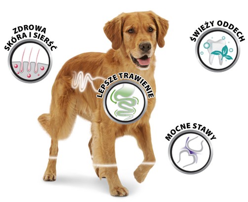 Wzbogacone w składniki wspomagające aktywność ruchową Twojego psa.
