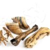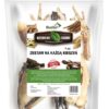 Mając na uwadze portfele właścicieli psów, zebraliśmy w zestawie funkcjonalne gryzaki o stosunkowo niskiej cenie: stripsy wołowe (skóra z głowy wołowej-twarda i nieregularna), kopyta wołowe (można je faszerować jak konga), kurze łapki, racice dzika lub sarny – czyli dla każdego coś miłego.