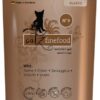 Specjał dla kotów – wartościowa karma dla naszych pupili. Catz finefood N°9 zawiera dużo delikatnej dziczyzny oraz zdrowe dodatki, jak borówka i ziemniak. Bez konserwantów, barwników i wzmacniaczy smaku. Nie zawiera GMO. Mmmmiau!