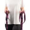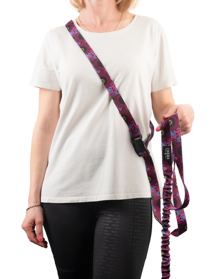 Smycz może być trzymana w dłoni, zapięta w pasie lub przełożona przez bark, co zapewnia różnorodność w zależności od sytuacji.