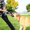 Taśma ułatwia wyjęcie zabawki psu z pyska bez konieczności dotykania samej piłki.