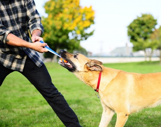 Piłką Ultra Tug można nie tylko bawić się z psem w aportowanie, ale także w szarpanie i ciąganie.