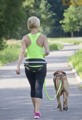 Do pasa pasują smycze Dingo z amortyzatorem (brak w zestawie z pasem) – wersja z rączką lub dwoma karabińczykami. Są to bardzo lekkie smycze z długim amortyzatorem, idealnie nadające się do biegania z psem. Zapewniają komfort nawet przy dużym szarpnięciu.