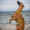 Żółte szelki dla psa są regulowane bezstopniowo w 3 miejscach: