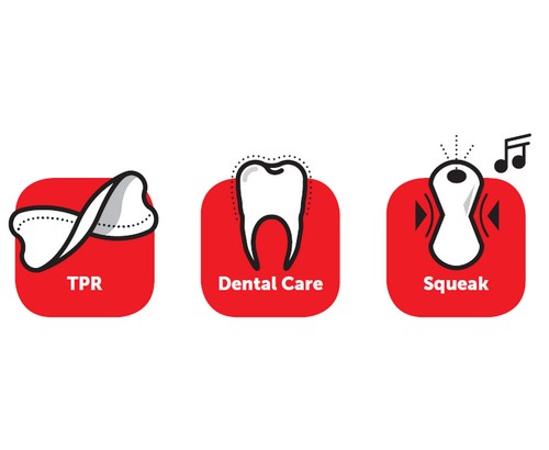 - Zabawki posiadają wypustki, które masują dziąsła psa i zapobiegają osadzaniu się kamienia nazębnego.