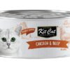Karma mokra Kit Cat jest opracowana przez naszych dietetyków, którzy jednocześnie są miłośnikami kotów. Karma Kit Cat jest tworzona ze starannie dobranych, naturalnych składników, bez dodatku barwników i konserwantów. Całkowity brak zbóż zapewnia Twojemu kotu zdrowe odżywianie, a odpowiedni poziom pH zmniejsza ryzyko wystąpienia kamieni nerkowych i infekcji dróg moczowych. Kawałki mięsa są starannie wyselekcjonowane i pozbawione kości. Receptura Kit Cat zawiera niezbędne witaminy, a także odpowiednią proporcję kwasów tłuszczowych Omega-3 i Omega-6, które wspierają pracę serca, zdrową skórę i lśniącą sierść u kotów. Dodane są także fruktooligosacharydy aby wspierać przewód pokarmowy oraz tauryna dla zdrowych oczu.