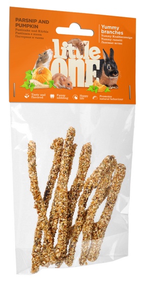 Pyszne gałązki z pasternakiem i dynią są korzystnym dodatkiem dietetycznym dla małych ssaków, a przy tym bardzo smakowitym. Przysmak jest źródłem witaminy C, witamin z grupy B, beta-karotenu i olejków eterycznych zawartych w warzywach.