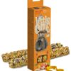 Pyszne kolby bez zbóż z innowacyjnym, w 100% jadalnym prętem wykonanym z 60 traw łąkowych do pielęgnacji zębów i zabawy. Przysmak nie zawiera żadnych zbóż, co czyni go idealnym dla wszystkich małych ssaków, w tym tych o specjalnych potrzebach żywieniowych. Ma wyjątkowo urozmaicony skład oraz chrupiącą konsystencję, którą uwielbiają małe ssaki.