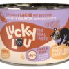 Gdzie indziej jest nudne standardowe jedzenie – Lucky Lou jest dostępne w 18 różnych odmianach smakowych w saszetkach 125 g oraz w puszkach 200 g i 400 g. Karma produkowana w Niemczech.