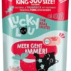 Gdzie indziej jest nudne standardowe jedzenie – Lucky Lou jest dostępne w 18 różnych odmianach smakowych w saszetkach 125 g oraz w puszkach 200 g i 400 g. Karma produkowana w Niemczech.