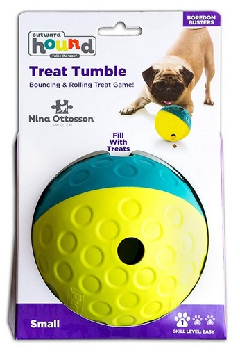 Gra Treat Tumble zachęca do swobodnej zabawy w poszukiwanie smakołyków! Zacznij od napełnienia kuli przysmakami lub suchą karmą. Potem zachęć pupila do zabawy aby wymyślił jak uwolnić smakołyki.