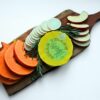 Puszysty i delikatny mus owadziano-warzywno-owocowy z zatopionymi kawałkami dyni hokkaido i korzenia pietruszki. Przyprawiony odrobiną świeżego rozmarynu.