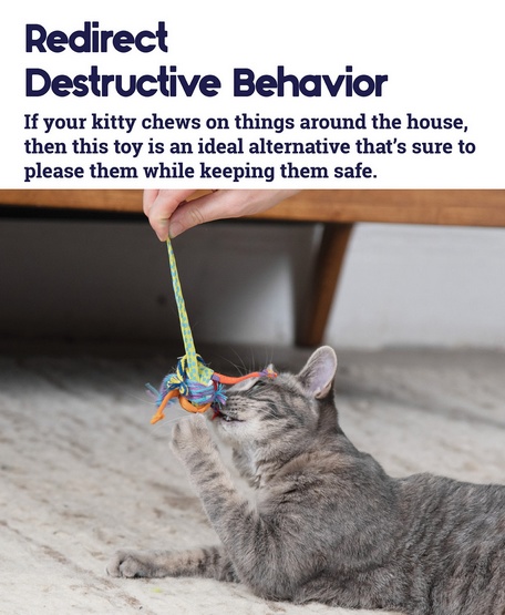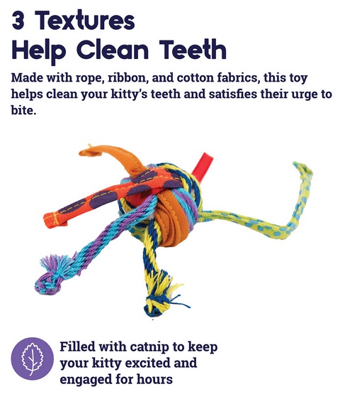 Piłka szmacianka jest kolorową plątaniną wytrzymałych sznurków i tasiemek, która zapewni fantastyczną zabawę każdemu kociakowi bez względu na wiek.