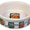 Biała miska ceramiczna z kolorowym motywem ozdobnym.