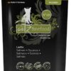 mięso i produkty pochodzenia zwierzęcego, ryby i produkty pochodne ryb (5% łosoś), minerały, warzywa (2% szpinak), inulina