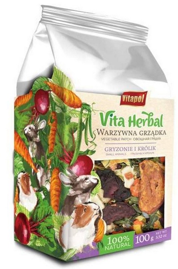 Mieszanka uzupełniająca która stanowi cenne źródło naturalnych witamin, minerałów i pektyn. W jej składzie znajdują się naturalne, najlepszej jakości warzywa, takie jak burak i marchew bogate w karotenoidy i witaminy: B1, B2, B6, C, E, H, K, PP oraz wapń, żelazo, miedź i fosfor. Wpływają pozytywnie na ilość czerwonych krwinek we krwi oraz odporność organizmu. Fasolka szparagowa – cenne źródło białka roślinnego oraz licznych soli mineralnych. Natomiast obecność w mieszance topinamburu wpływa na obniżenie zawartości glukozy we krwi, przez co z powodzeniem może być podawana również koszatniczkom.